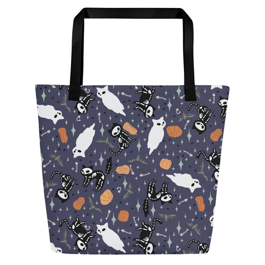 All-Over Print Large Tote Bag - SkeleCat - Purple