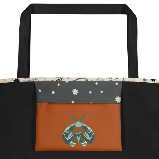All-Over Print Large Tote Bag -Esoteric Ephemera - White/Orange
