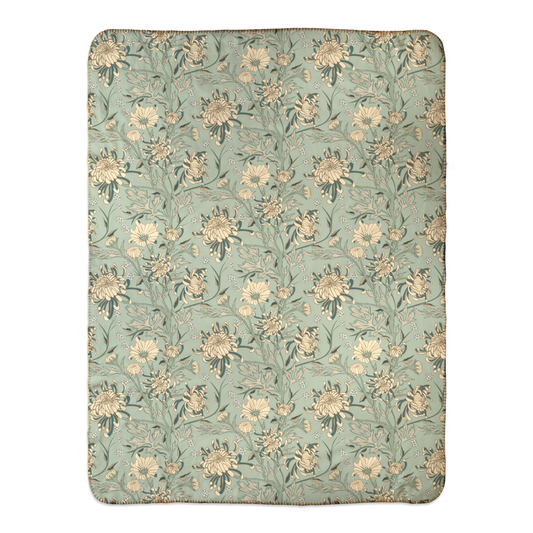 chrysanthemum reverie (blue) fleece sherpa blanket (2 sizes)