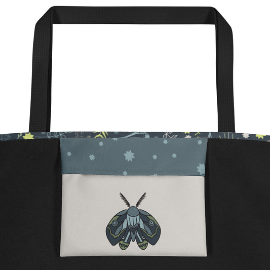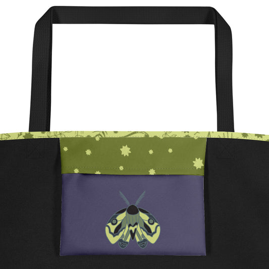 All-Over Print Large Tote Bag - Esoteric Ephemera - Navy/Green