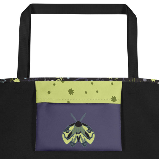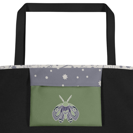 All-Over Print Large Tote Bag - Esoteric Ephemera - Black/Purple