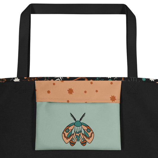 All-Over Print Large Tote Bag - Esoteric Ephemera - Black/Orange