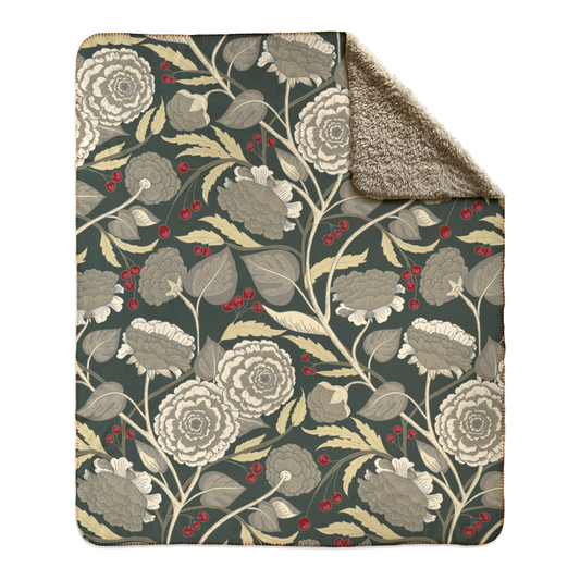 Fields Aflower (winter)- fleece sherpa blanket (2 sizes)
