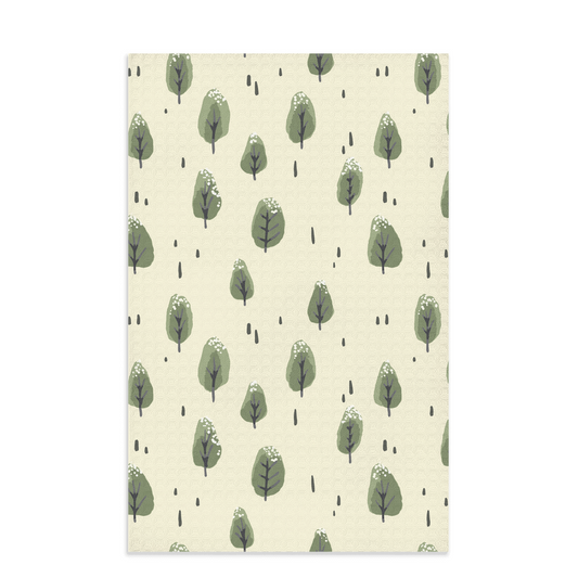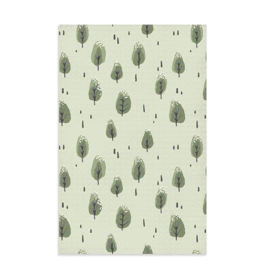 Winter Trees (green) - 16x25" waffle texture kitchen/hand towel