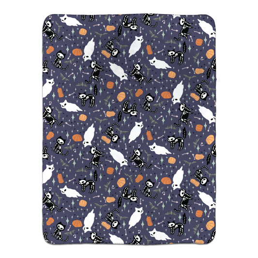 Fleece Sherpa Blanket - SkeleCat - Purple (2 sizes)