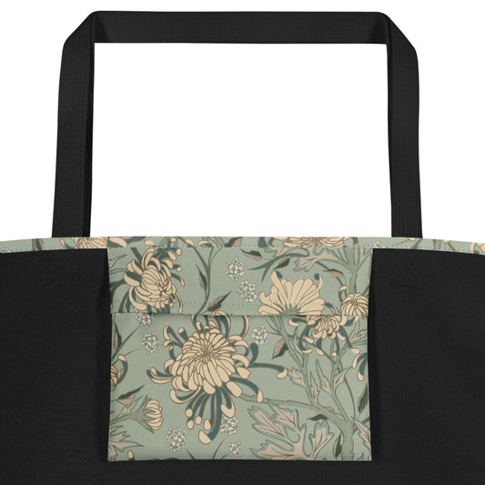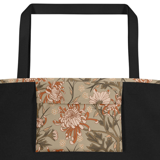 All-Over Print Large Tote Bag - chrysanthemum reverie (pink)