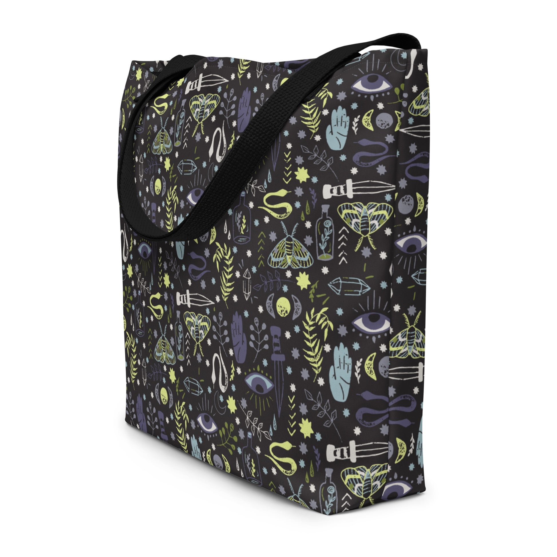 All-Over Print Large Tote Bag - Esoteric Ephemera - Black/Purple